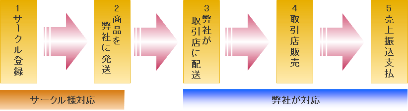 簡単な登録フォームを記入(サークル名・代表者名・支払先等)及び委託リストの受付