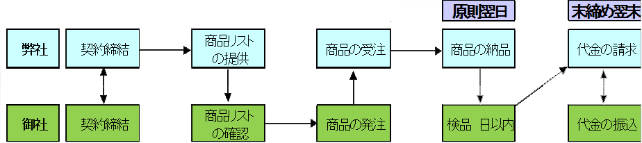 取引開始:当社に調印済みの契約書が届いて約2日で発注が可能になります。