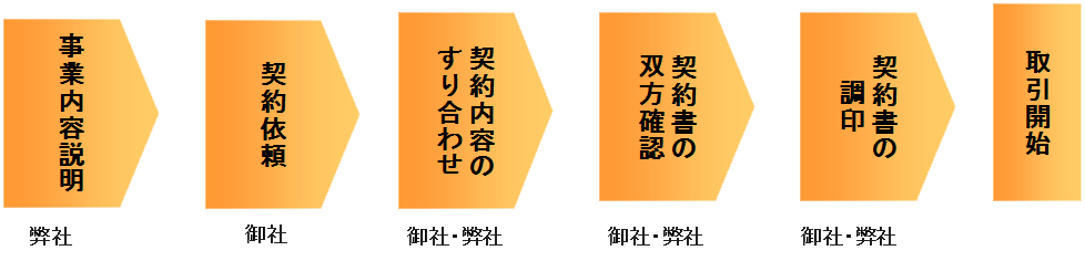 下記の流れでご契約を締結を致します。ただ御社フローもあると思いますのでご相談させて頂ければ幸いです。